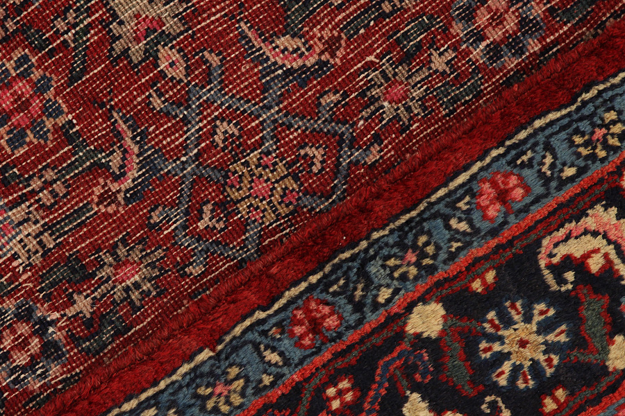 Abrash: Due to the different amount of grease in the wool and the added salt during the process of dyeing, the wool has got a varying colour absorbance. This is not very visible before weaving. During the weaving though, lines of the same colour are formed in the carpet. This is called Abrash (which in Farsi means little cloud) and it shows that the wool was not manufactured using chemical means and marks the naturalness and authenticity of the carpets. Examples