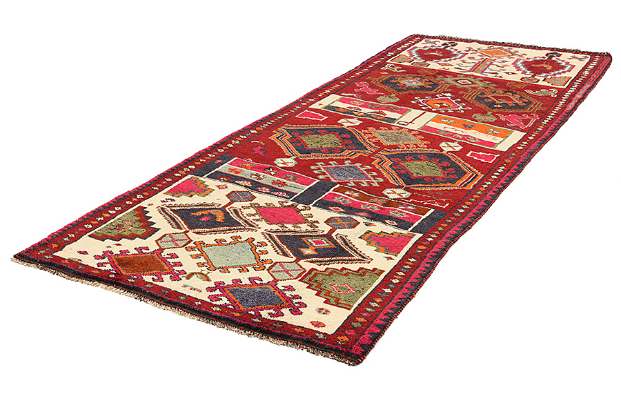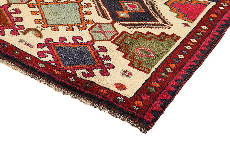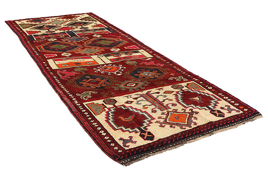 Lori Carpets : Carpets woven by the Lurs, a nomadic tribe in the mountainous Kurdish region of Southwest Iran, bordering Iraq. The Lori carpets usually have geometric shapes, often with rhombi and strictly linear scenes of the herbal and animal world. Because the areas where the Lurs live are inaccessible and isolated, they still weave with the old traditional ways, without influences from the Europeans. The centre of Luristan is Choremabad, which gave its name to the carpets woven there. Furthermore carpets have been named after the salt lake Neris.