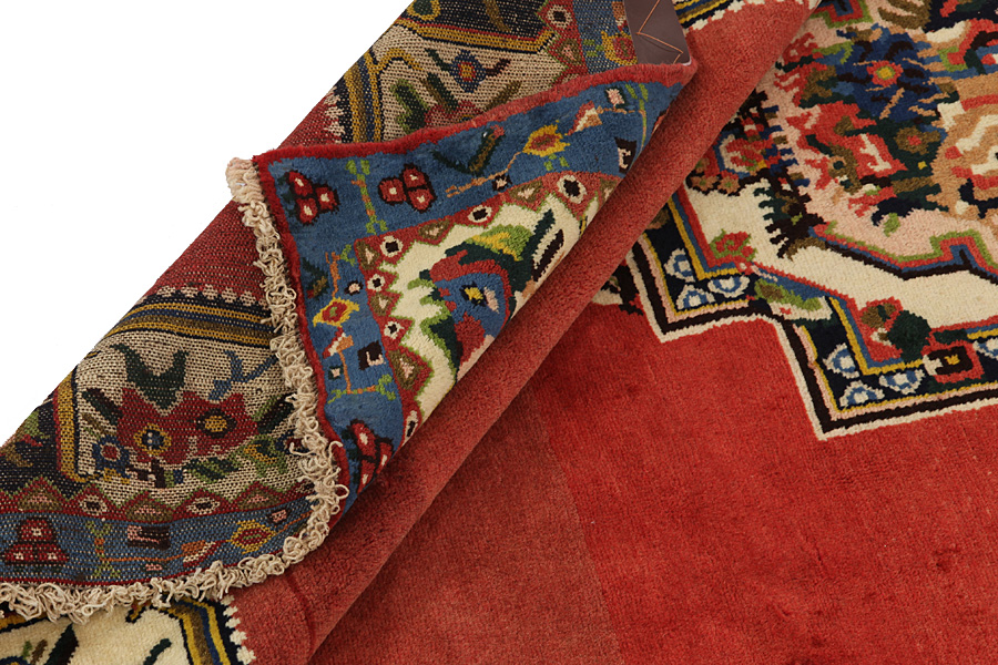 Abrash: Due to the different amount of grease in the wool and the added salt during the process of dyeing, the wool has got a varying colour absorbance. This is not very visible before weaving. During the weaving though, lines of the same colour are formed in the carpet. This is called Abrash (which in Farsi means little cloud) and it shows that the wool was not manufactured using chemical means and marks the naturalness and authenticity of the carpets. Examples