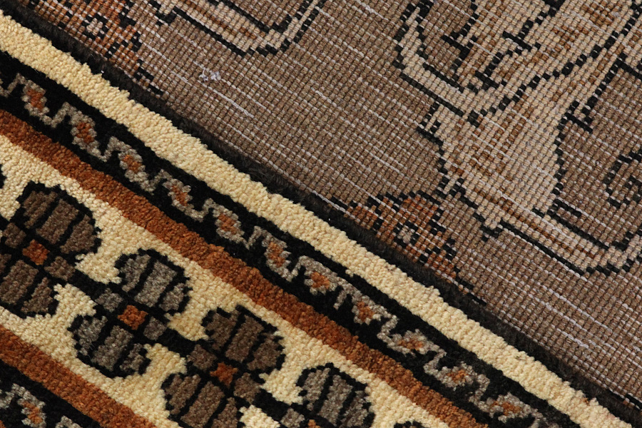 Abrash: Due to the different amount of grease in the wool and the added salt during the process of dyeing, the wool has got a varying colour absorbance. This is not very visible before weaving. During the weaving though, lines of the same colour are formed in the carpet. This is called Abrash (which in Farsi means little cloud) and it shows that the wool was not manufactured using chemical means and marks the naturalness and authenticity of the carpets. Examples