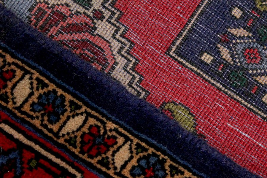Abrash: Due to the different amount of grease in the wool and the added salt during the process of dyeing, the wool has got a varying colour absorbance. This is not very visible before weaving. During the weaving though, lines of the same colour are formed in the carpet. This is called Abrash (which in Farsi means little cloud) and it shows that the wool was not manufactured using chemical means and marks the naturalness and authenticity of the carpets. Examples